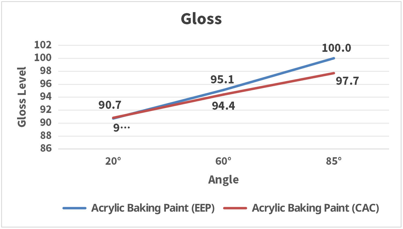 - In the baking black paint system, using EEP results in higher gloss, a better anti-boiling bubble effect, and thinner film thickness, with other performance characteristics basically consistent with CAC.