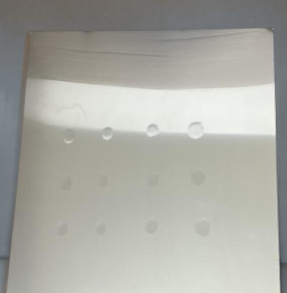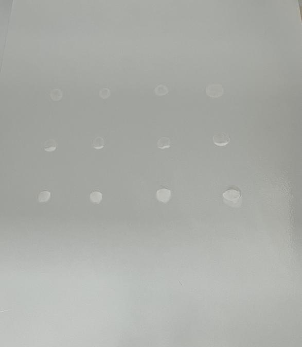 | Use a dropper to transfer approximately 2mL of the sample to be tested and drop it onto the aluminum plate from left to right. Drops should increase in size, with three rows of four drops each, forming a final “Z” pattern. | ![]() | ![]() |