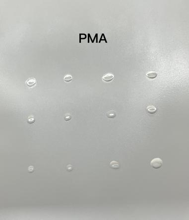 Using PPG one-component primer (P565-9085) as the test medium, this experiment evaluates and determines whether the solvents contain anti-wetting agents, silicones, or other substances that can open the paint film (paint) and cause cratering or other defects. This is done by observing the occurrence of sink marks (craters) on the coated surface after spraying the new solvents EEP (ethyl 3-ethoxypropionate), MMP (methyl 3-methoxypropionate) and the conventional solvent PMA (propylene glycol monomethyl ether acetate).